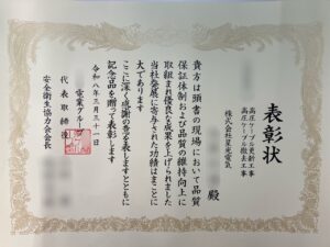 2026.04.02 表彰 Tweet この度、お客様より従業員2名が表彰されました。 日頃からの安全作業が評価されてとても喜ばしいかぎりです。 これからも社員一同で頑張ってまいります。 コメントを残す コメントをキャンセルコメント ※ 名前 * メールアドレス(公開はされません。) * 上に表示された文字を入力してください。